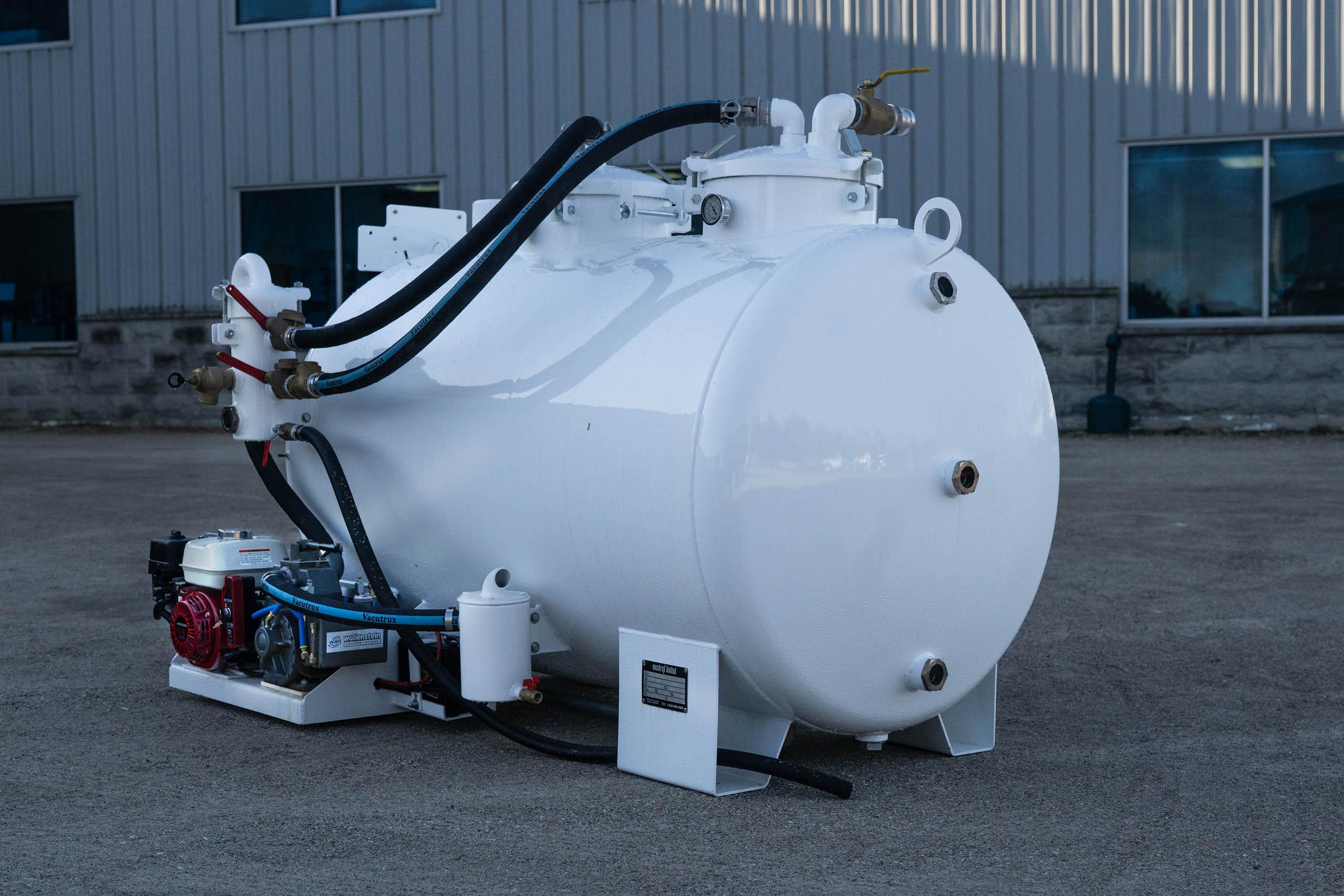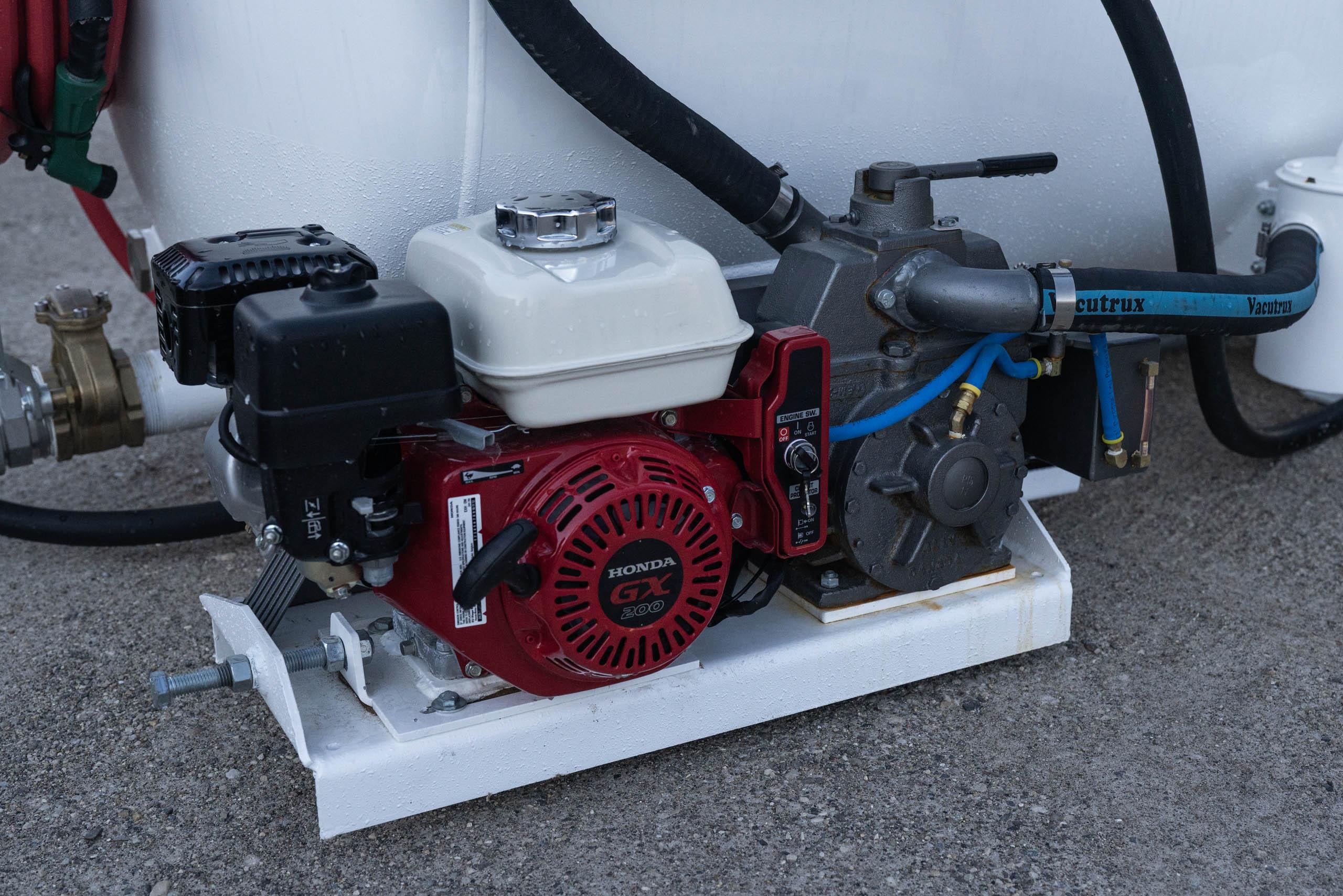 Manufacturer: Vacutrux | Tank System: 2 Compartment 370 Imp. Gallon Septic (250 Sewage, 120 Water) | Material: Hot Dip Galvanized Carbon Steel w/ polyurethine finish | Color: Vacutrux White | Pump Model: Wallenstein Model 151HVO w/ 6.0hp Honda Electric Start Gasoline Engine